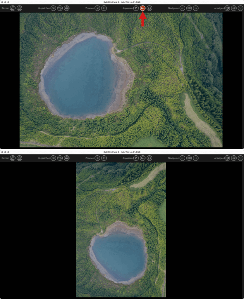 Klicken Sie auf die Schaltfläche Drehen, um das Bild in 90°-Schritten nach rechts zu drehen, bis es wieder in seine Ursprungsposition zurückgekehrt ist.