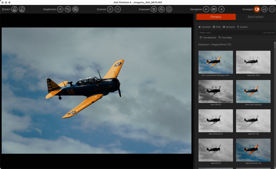 Die Anwendung eines Presets, egal ob es sich um ein Farb- oder Schwarz-Weiß-Film-, Digital-, Kino-, benutzerdefiniertes oder von der Time Machine inspiriertes Rendering handelt, ist extrem einfach und das Prinzip ist für alle gleich: