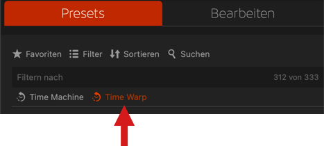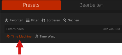 Nach dem Verlassen der Time Machine und der Anwendung eines Presets bleibt das aktive Preset in der Liste ausgewählt und wird mit einem orangefarbenen Rand hervorgehoben.