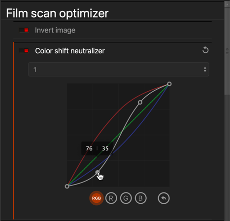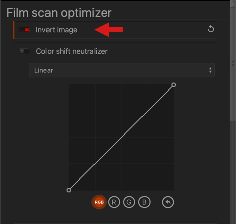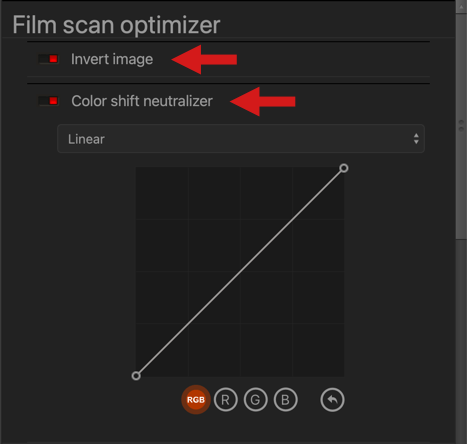 However, it is common for inverted negatives to show color shifts, strong color casts, and/or insufficient or excessive contrast. To address this, you can use a series of presets and the tone curve:
