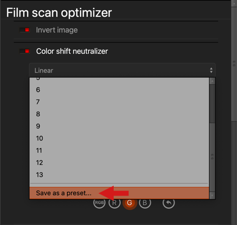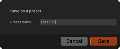 - In the preset menu, scroll to the bottom of the list and select Save as Preset.