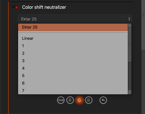 - Film: The drop-down list lets you choose the grain associated with a particular silver halide film.