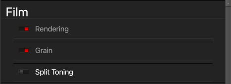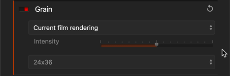 When you click on Current film rendering, the grain of the film currently selected will be used. You can also choose to eliminate the grain by selecting No grain.