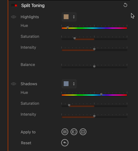 The Split Toning palette has some additionnal tools to help and to refine the corrections: