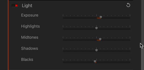 - Exposure: Darkens (to the left) or brightens (to the right) the overall content of the image.