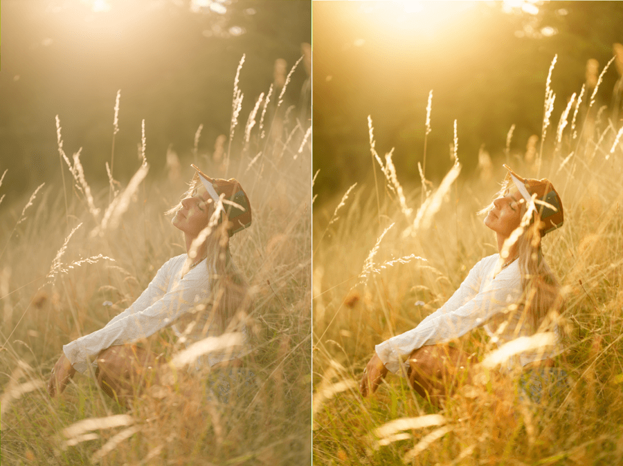 - Cyan: balances the light moving the color temperature toward cooler tones. Used in landscape photos, it strengthens the warm tones of a sunset, for example, by shifting them toward blue and green tones.