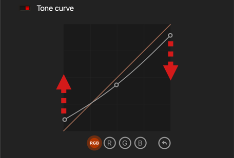 - Reduce contrast by flattening the curve, making shadows lighter, highlights less bright, and midtones adjustable either way. The resulting image will look softer, even grayish.