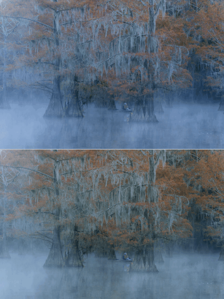 - Warm tone moderately reduces the proportion of cool tones (blues) and increases the warm tones.