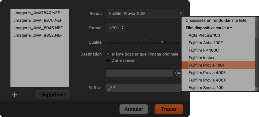 - Modifiez si besoin le suffixe des fichiers (par défaut _DxOFP).