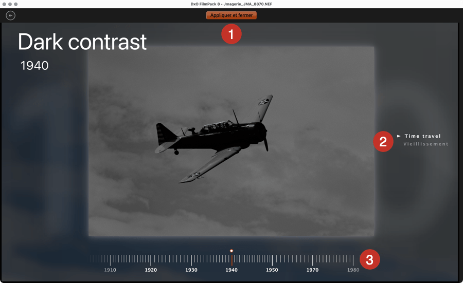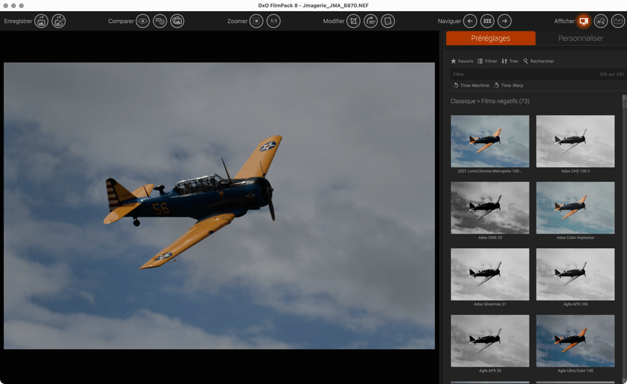 - Les rendus appliqués dans Time Machine et Time Warp sont bien entendu réversibles tant que vous n’enregistrez pas en quittant DxO FilmPack.