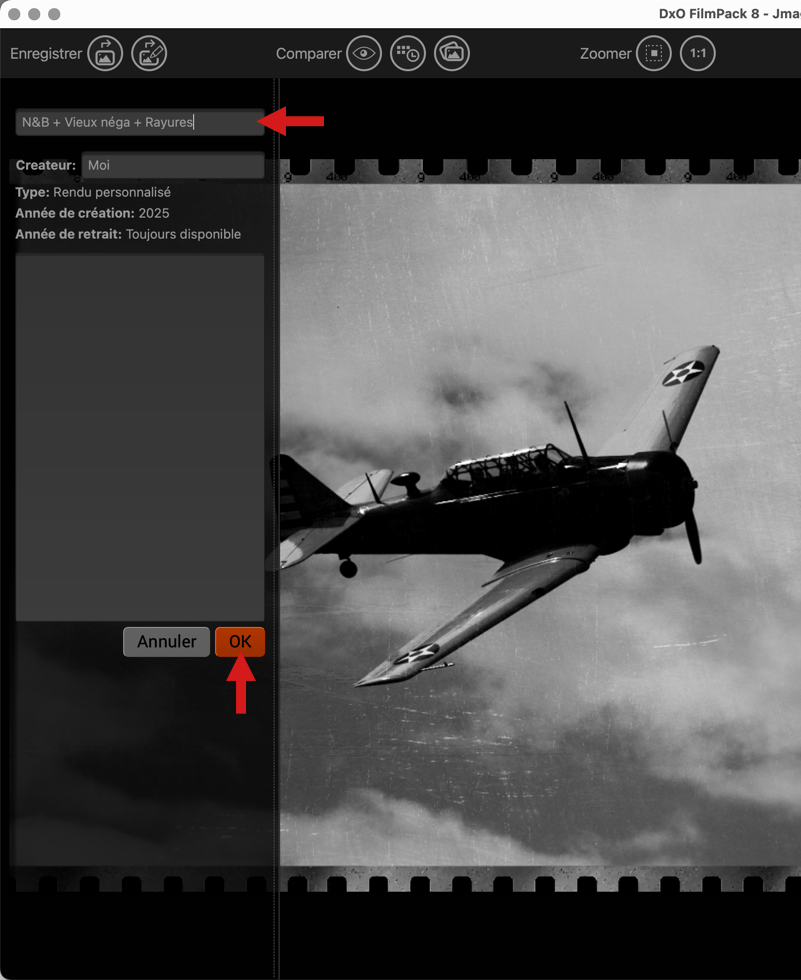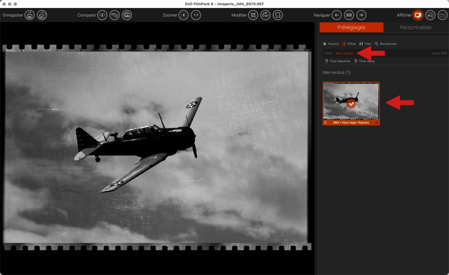 Pour appliquer un rendu, qu’il s’agisse de film argentique couleur ou noir et blanc, de rendu numérique, cinéma, personnalisé ou inspiré de la Time Machine, c’est extrêmement simple et le principe est le même pour tous :