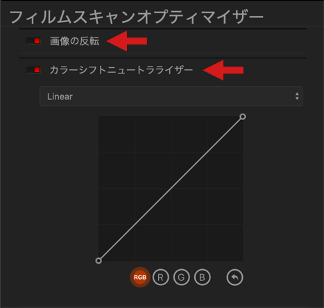 フィルムスキャンオプティマイザー カーブ