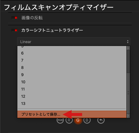 - プリセット 6、7、8、9:一般的なフィルムスキャナーの標準パラメーターに基づいています。
