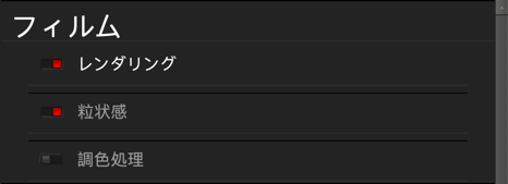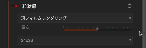 現フィルムレンダリングを選択すると、すでに選択されているフィルムの粒状感が適用されます。 粒状感なしを選択することもできます。