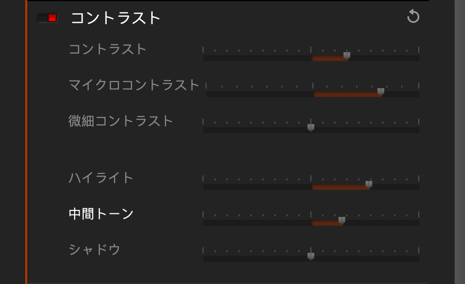 - 中間トーン: 中間トーン、つまりヒストグラムの中央値のレベルを調整します。