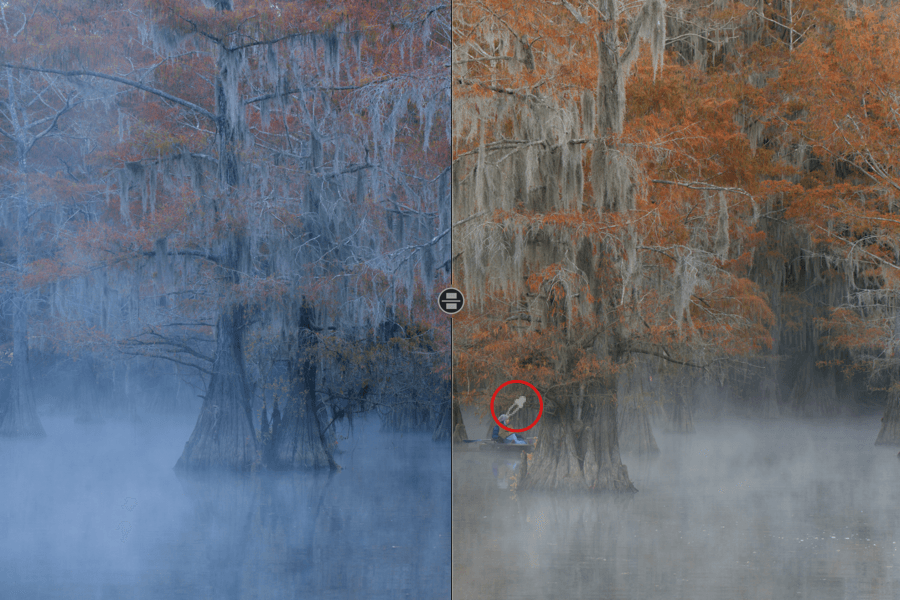 ノイズ除去パレット内の輝度ノイズスライダを使って画像からノイズを取り除いてから、美しい銀塩粒状感を追加することができます。