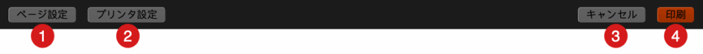 - 下部ツールバー:ページ設定、プリンタ設定、印刷、キャンセルボタンがあります。