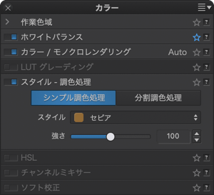 このパレットは DxO FilmPack プラグインがライセンス認証されている場合のみ表示されます。